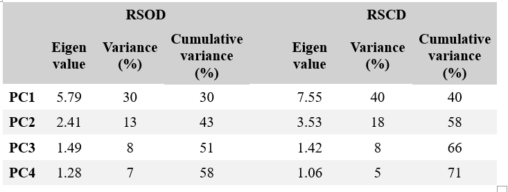 Table 2. Eigenvalues, explained variance and cumulative variance of the first four PCs