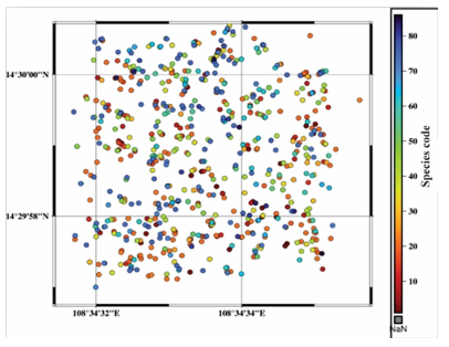 Building upon this framework, current research on spatial distribution models focuses on clarifying the structure and organization of forest plant communities. By analyzing these models, researchers can identify dominant species groups, investigate vegetation stratification, and assess the influence of environmental factors on species distribution [3]. These models also provide evidence of interspecific competition by revealing whether species distributions are concentrated or dispersed, thereby allowing inferences about the interaction processes and the impact of competition on community dynamics [4]. Consequently, spatial distribution models are also highly applicable in forest conservation and management, helping to identify high-biodiversity areas that require conservation priority, and proposing suitable locations for afforestation or habitat restoration that align with the natural structure of the ecosystem [5].