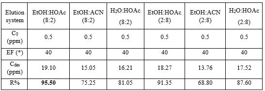 Table 2. Study of elution systems with different volume ratios (n = 3).